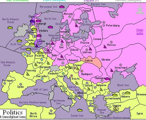 Diplomacy is actually more of a political strategy game with 7 players starting in 1900 each playing one of the European powers vying to spread their empires by allying with and at the right moment 'stabbing' others. The pic shows the end of a game won by a Turkey/Russia alliance. A player can win solo or with allies as long as all dominent players agree on how things are carved up