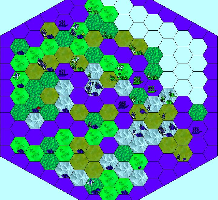 Another science fiction TripleA map, it derives from an old classic science fiction war game called Ogre. An Ogre was a futuristic super tank that would fight against a force of futuristic regular sized armored vehicles and troops. This was a small boxed game in the 1970s that was popular among gamers for being easy to take to school and sneak a game on your desk during class.