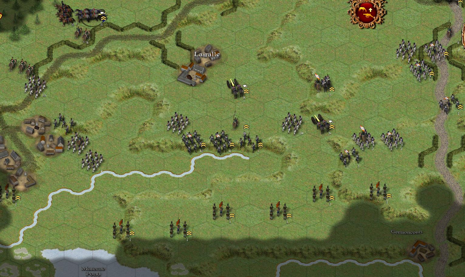 Meanwhile on Steam some of these I've played recently are pretty old but I've gotten good games out of them. This is one on the battle of Waterloo. It has four scenarios as Waterloo was actually a campaign of four battles. This scenario is Quatre Bras with the French coming from the top edge aiming to overcome the Brits to get across the river below.