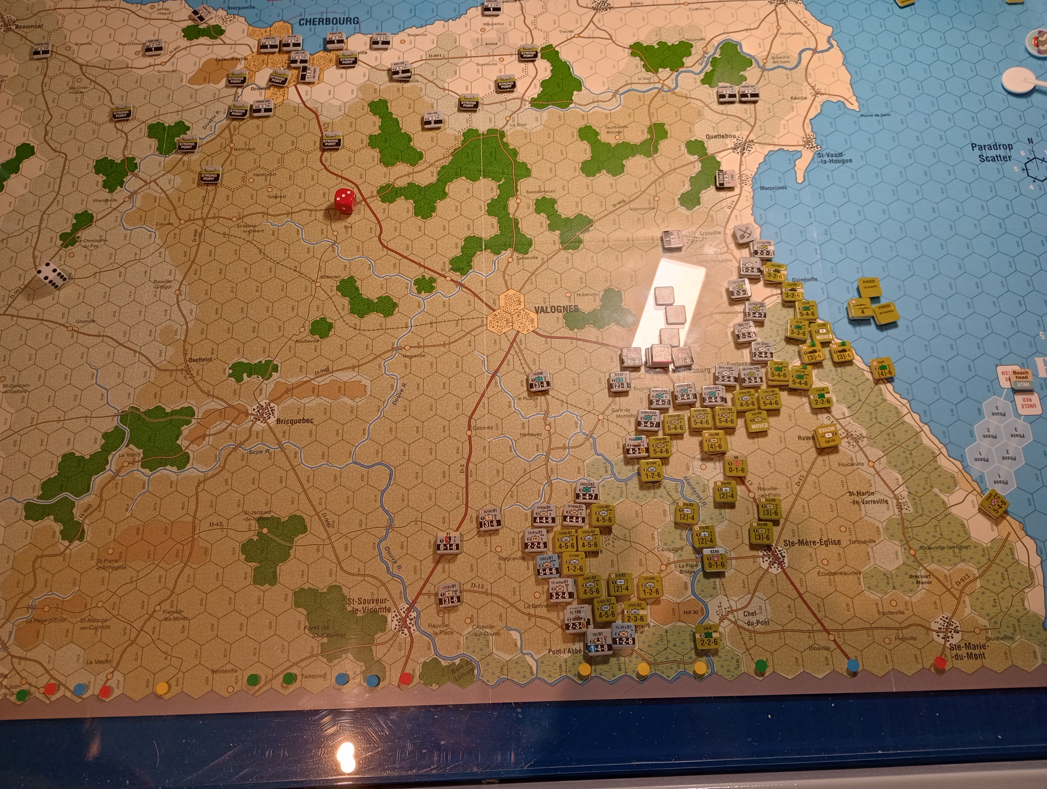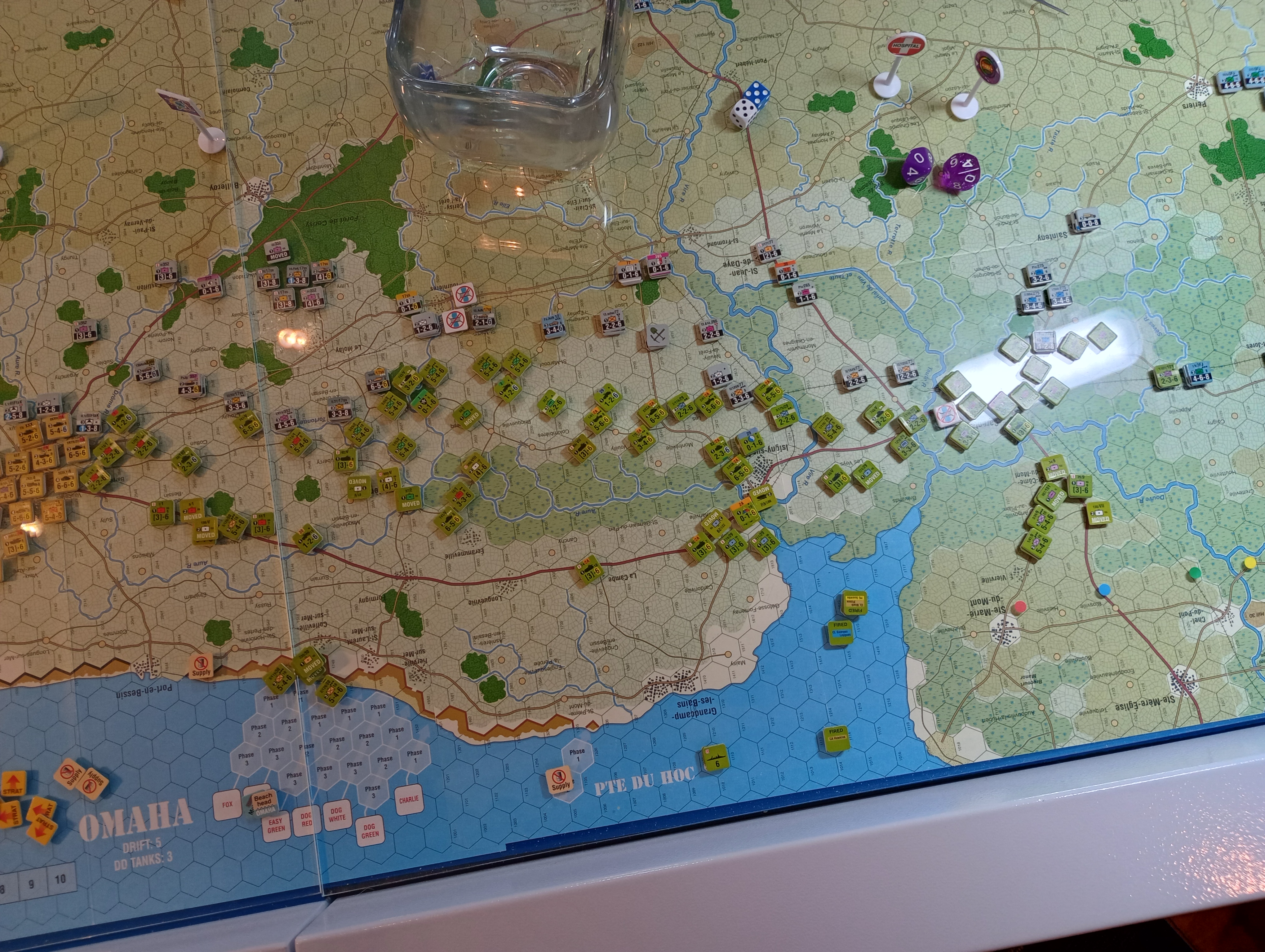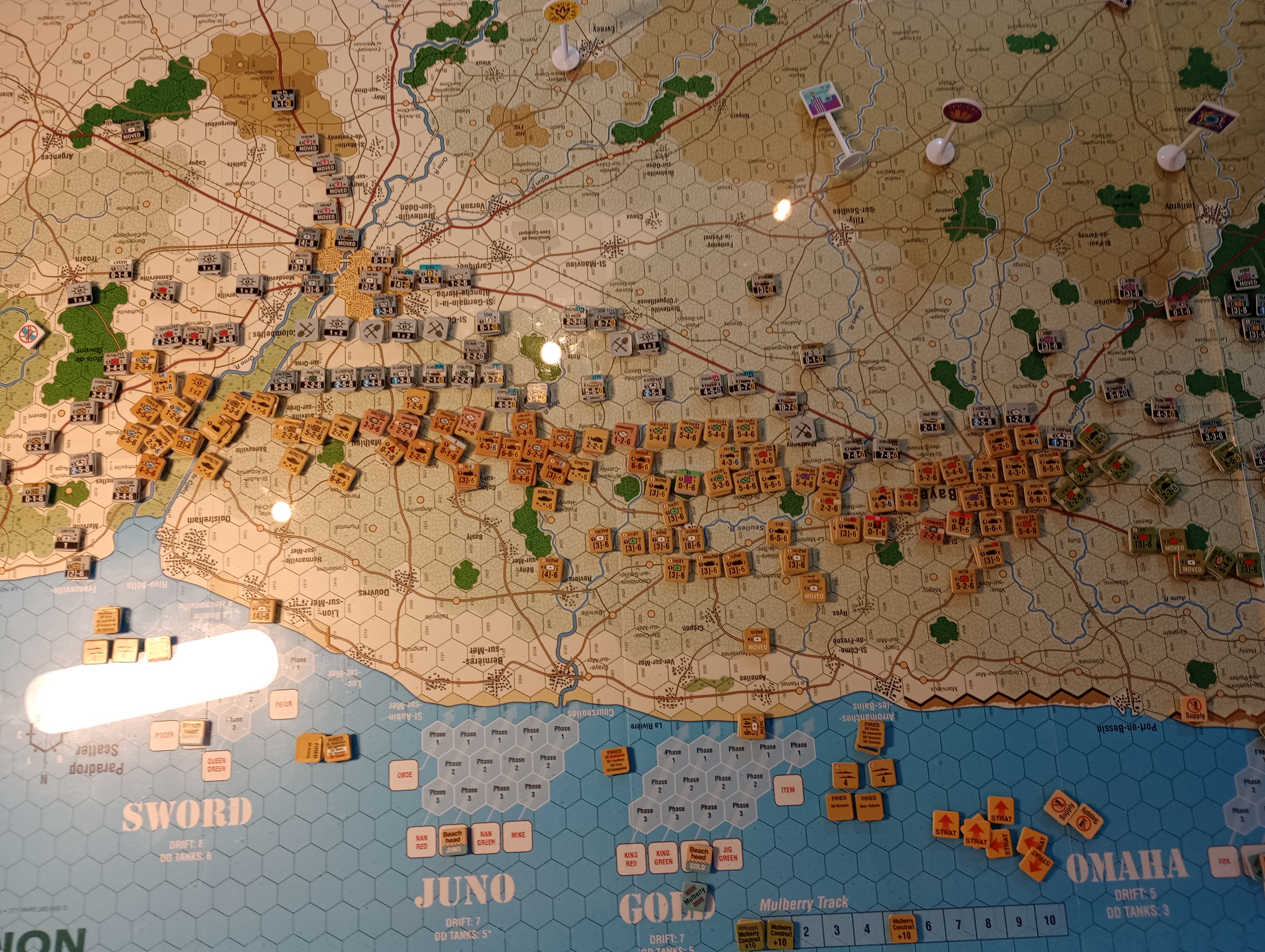 I was fortunate to play this in-person with a group of four of us. I played the Commonwealth invaders - tan/brown units in the second and third pics. My biggest takeaway from the experience was the allies' task in reorganizing the units after their landings for supply and combined attacking purposes. Another realization was the value in allied heavy fire power in breakthroughs for advancement - the planes, the ships, and artillery.